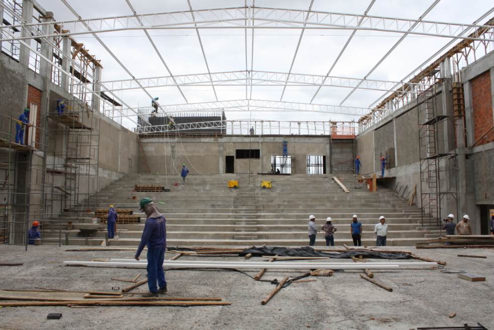 Obras do novo auditório do campus Petrolina tiveram início em janeiro de 2018 e têm previsão de conclusão para março de 2019. (Foto: Divulgação)