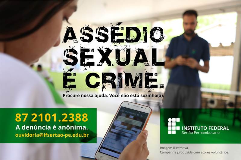 O combate ao assédio sexual entrou no foco de uma campanha iniciada nesta segunda-feira (26) pelo Instituto Federal do Sertão Pernambucano (IF Sertão-PE). Ao longo de um mês serão veiculados conteúdos diversos, que abordarão a temática por meio de notícias, postagens nas redes sociais, vídeos, uma live e um espaço com informações sobre a campanha no sítio institucional.