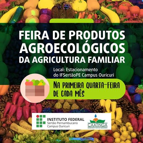 O campus Ouricuri do IFSertãoPE e a ONG Caatinga vão realizar mensalmente uma feira de produtos agroecológicos da agricultura familiar durante o ano de 2023. A primeira feira está acontecendo nesta quarta-feira (1) no estacionamento da instituição, das 8h às 12h.