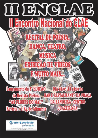 Com o objetivo principal de incentivar a leitura, a produção e a divulgação da literatura no país, acontecerá neste sábado (28), a partir das 18h, no Bar e Restaurante da Praça Imaculada Conceição em Juazeiro, o 2º Encontro Nacional do Círculo Literário Analítico Experimental (ENCLAE).