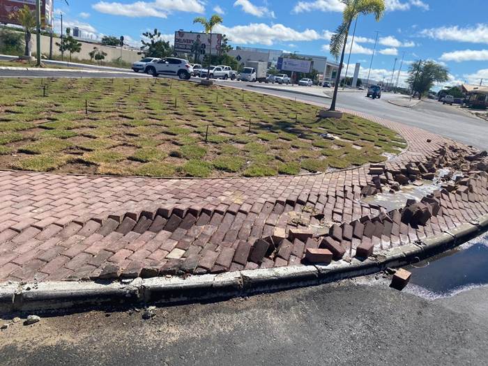 Me refiro a uma obra feita sem nenhum projeto, sem pensar em que tipo de tráfego está circulando na área, com certeza não pensaram em tráfego de veículo grande, e fizeram uma rotatória com material fraco.
