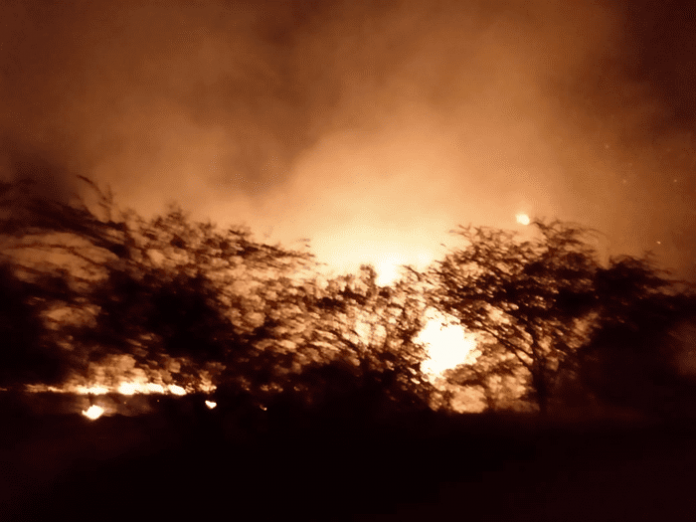 Um incêndio registrado na noite de ontem (19) atingiu uma parte da Fazenda Timbaúba, em Petrolina. O fogo era visto a quilômetros de distância, chamando bastante a atenção.