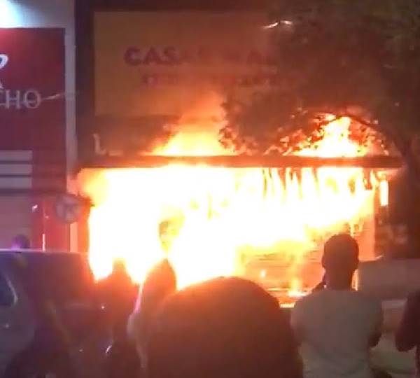 A Polícia Militar foi acionada e isolou a área. Funcionários de outras lojas e pessoas que passavam pelo local mostravam-se sem acreditar no que estava acontecendo. Uma equipe do Corpo de Bombeiros debelou o incêndio, mas ainda não há detalhes se alguém ficou ferido.