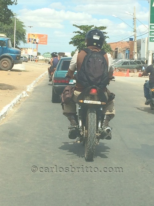 Em Juazeiro, quem deveria dar o bom exemplo é o primeiro a cometer infração grave no trânsito. Na foto acima enviada por um leitor, o policial militar circula tranquilamente numa motocicleta sem placa, nem retrovisor.