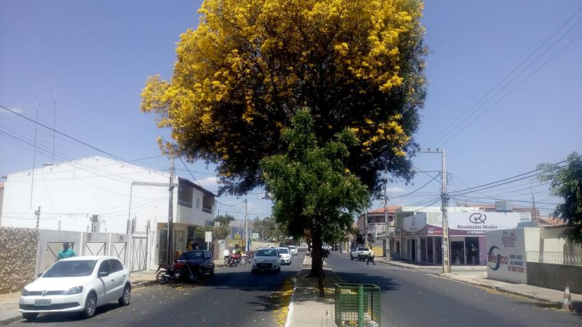 Em vários pontos de Petrolina, os ipês estão dando uma nova cara à cidade por conta do belo colorido de suas flores. Na Rua da Polônia, localizada na Areia Branca (zona leste), não é diferente.