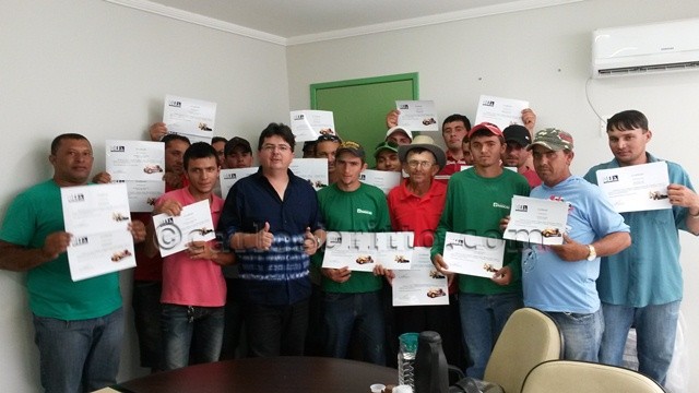 O grupo participou do curso de Operador de Máquinas Pesadas e recebeu das mãos do prefeito Roniere Reis seus certificados de capacitação. De acordo com o gestor, o curso veio suprir uma necessidade do município, por conta da pouca mão de obra qualificada. (Foto: Ascom PMD/divulgação)
