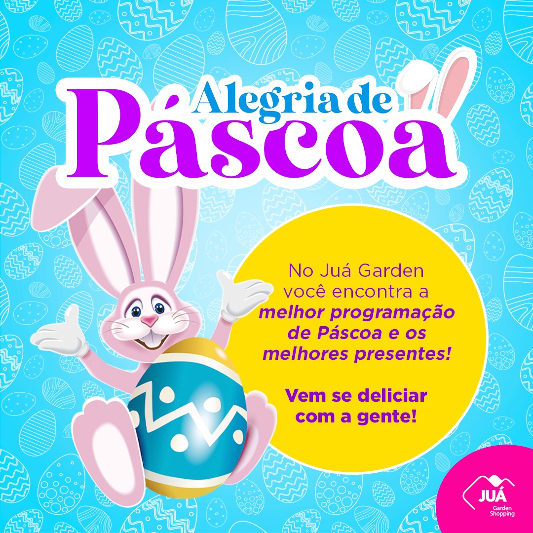 A Semana Santa está se aproximando, e, por isso, o Juá Garden Shopping está lançando a campanha “Alegria de Páscoa”, que acontece até o dia 17 de abril, com atrações gratuitas, ofertas e muita diversão para as crianças. O clima de alegria já contagia as vitrines dos lojistas que se preparam para atrair e encantar quem passar pelo Juá.