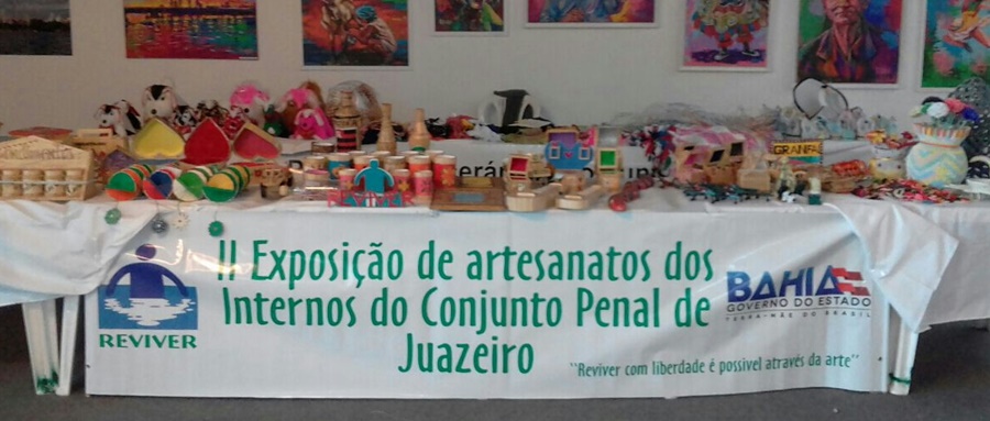 A 2ª Exposição de Artesanato dos Internos do Conjunto Penal de Juazeiro (BA) está aberta para visitação no Juá Garden Shopping até este sábado (29). A mostra conta com mais de 400 peças produzidas manualmente, como imãs de geladeira, esculturas de sabão, ursos de pelúcia, crochê e peças feitas com palitos de picolé.