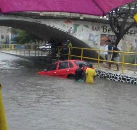 Durante toda a tarde, vários internautas usaram o facebook para mostrar os principais pontos de alagamentos. Um dos pontos mais críticos é o Viaduto na Rua do Paraíso, Centro da cidade, onde este veículo foi parcialmente encoberto quando o motorista tentava passar pelo pontilhão.
