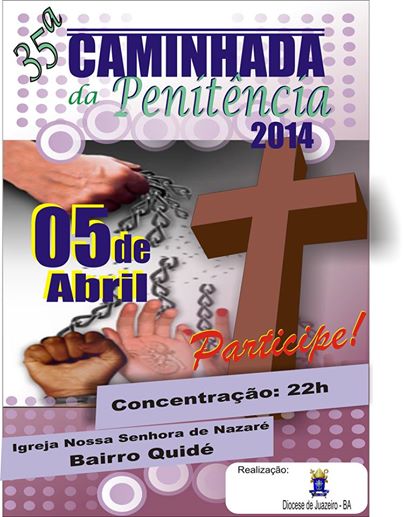 Tradicional evento da Igreja Católica de Juazeiro, a Caminhada da Penitência chega a seu 35° ano. A edição de 2014 será realizada neste sábado (5), com saída às 22h na Igreja Nossa Senhora do Nazaré, no Quidé.