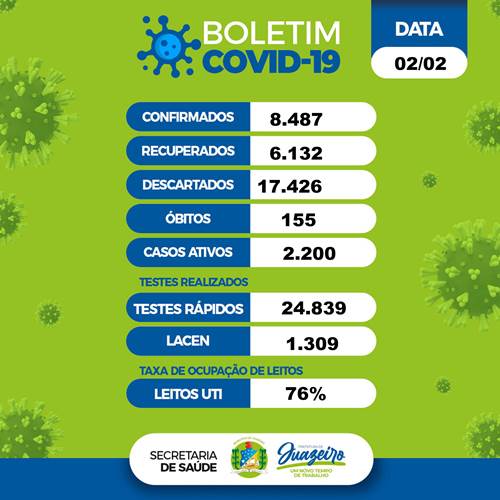 O município não registrou óbito causado por complicações da Covid-19 no boletim desta terça, permanecendo com 155.