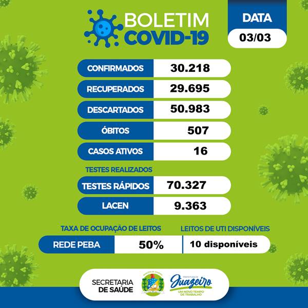 Foram realizados, desde o início da pandemia, 70.327 testes rápidos em Juazeiro e 9.363 RT-PCR no Lacen-BA de Salvador. Até o momento o município possui um total de 507 mortes causadas pela doença.