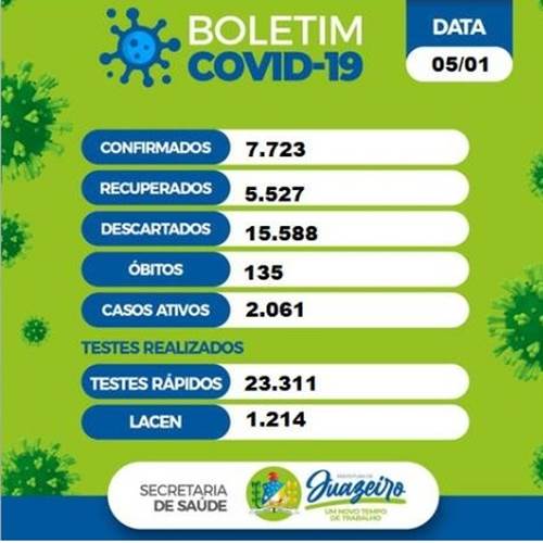 O total de infectados pela doença, desde o início da pandemia na cidade, é de 7.723. Desse número, 5.527 já estão recuperados. São 2.061 casos ativos da doença, enquanto os óbitos somam 135.