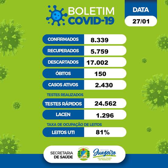 Juazeiro contabilizou mais 25 casos positivos do novo coronavírus (Covid-19) nas últimas 24 horas. A informação está no boletim epidemiológico da Secretaria de Saúde desta quarta-feira (27).