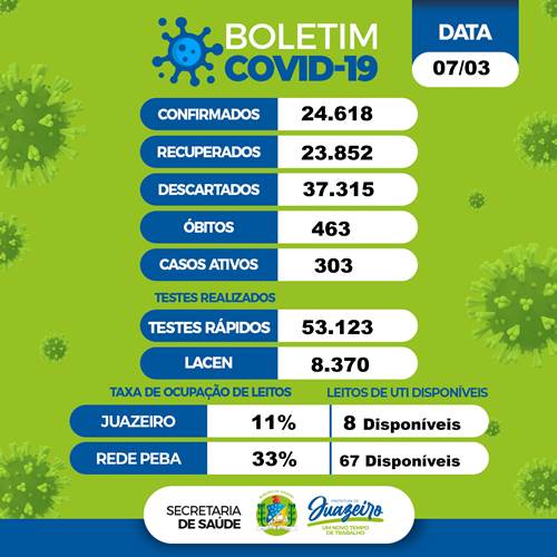 O município contabilizou ainda mais um óbito por complicações da Covid-19. Trata-se de um homem de 47 anos, com histórico de comorbidades, que faleceu em um hospital particular de Juazeiro. Com isso, o município chegou a 463 mortes em decorrência da doença.