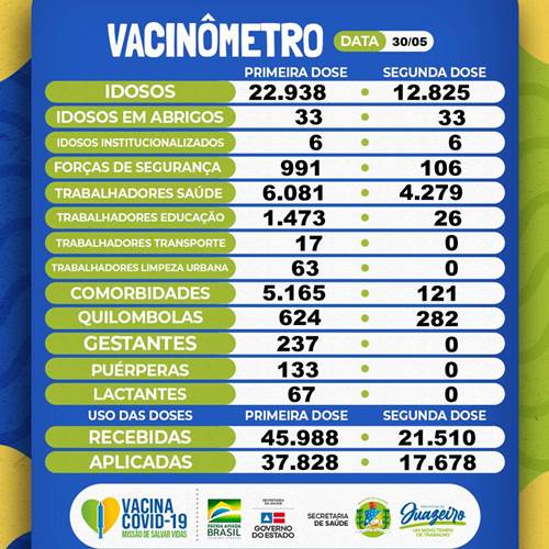 O óbito deste domingo é de um idoso de 75 anos, com histórico de comorbidades, que faleceu no Hospital Regional de Juazeiro (HRJ). O município passou a contabilizar 266 mortes pela Covid-19.