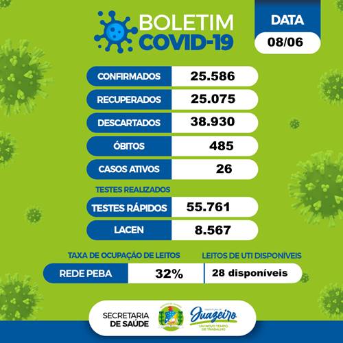 Juazeiro (BA) registrou sete novos casos da Covid-19 nesta quarta-feira (8). A informação está no boletim epidemiológico da Secretaria de Saúde (Sesau).