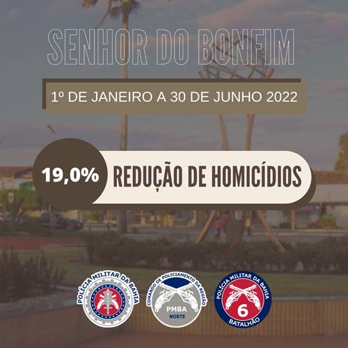 Em Juazeiro, que sedia 4 Companhias Independentes de Polícia Militar (CIPM) e uma Companhia Independente de Policiamento Tático (CIPTN), no acumulado do primeiro semestre de 2022 a redução foi de – 8,2% (72 CVLIs em 2021, ante 66 em 2022), o que representa 6 CVLIs a menos em números absolutos. Já em Senhor do Bonfim essa diminuição foi de -19% (4 CVLIs a menos).
