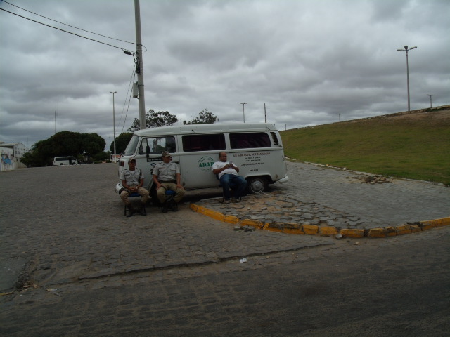 Esse serviço é duro demais.dois policiais sentados sorrindo para a câmera do fotógrafo e um fiscal jogando no celular.ou dinheiro jogado fora.na Bhaia tem,tem,tem…