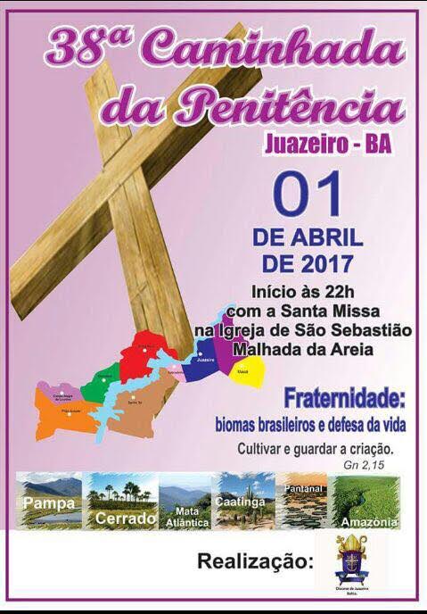 A tradicional Caminhada da Penitência, promovida pela Diocese de Juazeiro/BA, chega à sua 38ª edição. No próximo sábado, (1º de abril), milhares de fiéis são esperados no trajeto entre a igreja de São Sebastião, bairro Malhada da Areia até a Catedral-Santuário Nossa Senhora das Grotas. Serão mais de quatro horas de caminhada, onde os católicos fazem seus sacrifícios e orações, em preparação à Festa da Páscoa.