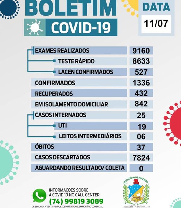 Os pacientes confirmados no boletim têm idades entre 14 e 85 anos, sendo 26 resultados obtidos por testes rápidos da prefeitura e dois pelo Laboratório Central (Lacen) de Salvador (BA). Todos estão sem gravidade, em isolamento domiciliar, acompanhados pelas equipes de saúde do município. A Sesau confirmou também mais 15 curas clínicas, totalizando até o momento 432 pessoas recuperadas da Covid-19.