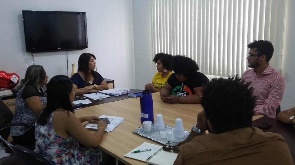 Para discutir a parceria, ontem (5) a secretária de Educação e Juventude (Seduc), Lucinete Alves, se reuniu com integrantes da UEB. A abertura do 7º Congresso será na sexta-feira (14), no auditório da Universidade Estadual da Bahia (Uneb); no sábado (15) acontecem os debates e os grupos de trabalhos com temas relacionados à juventude, e no domingo (16), o encerramento terá um ato político e a eleição da nova diretoria da UEB. (foto/divulgação)