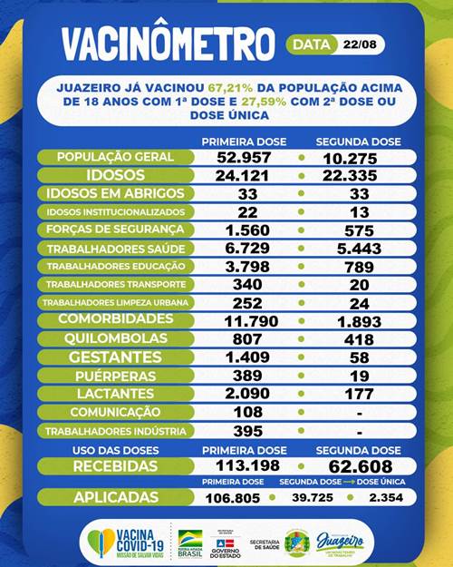 O levantamento aponta que o percentual de ocupação dos leitos de UTI para Juazeiro na Rede PEBA (Pernambuco-Bahia) é de 33%, com 108 disponíveis. Somente em Juazeiro, a ocupação dos leitos de UTI para pacientes com Covid-19 é de 35%, com 13 disponíveis.
