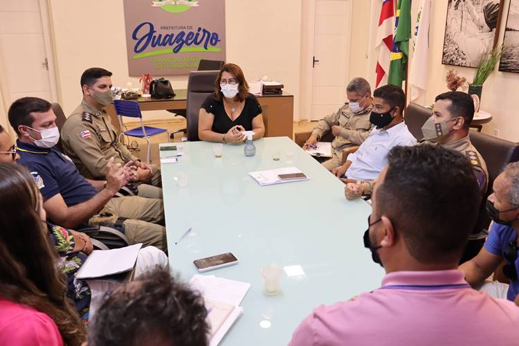 A prefeita Suzana Ramos se reuniu na segunda-feira (22), em seu gabinete, com sua equipe técnica e as forças de segurança da cidade para detalhar sobre a organização, a estrutura e a segurança durante o período do ‘Natal Iluminado – Um novo tempo de esperança’, que vai ocupar as ruas de Juazeiro a partir de 1° de dezembro. Durante todo o mês, a cidade abrigará uma grande exposição de Natal, da rotatória da Lomanto Júnior até a Orla, e também será palco das tradicionais cantatas natalinas, apresentações de orquestras e ternos de reis, na sede e zona rural.