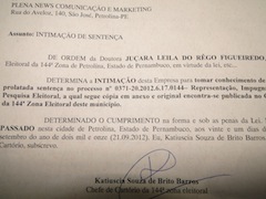A juiz eleitoral da 144ª Zona Eleitoral de Petrolina, Juçara Leila do Rêgo Figueiredo, reconheceu em seu despacho que o nosso Blog e a Plena News (nossa agência de Publicidade e Marketing) não encomendaram a pesquisa da Arcerte que impugnou e prolatou a sentença.