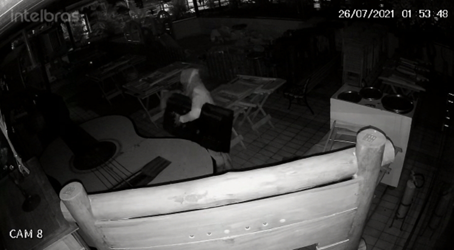 Câmeras de segurança flagraram, na madrugada da última segunda-feira (26), um homem furtando aparelhos eletrônicos, equipamentos de som e outros objetos dentro de um bar na Orla de Juazeiro (BA). De acordo com o proprietário do estabelecimento, o ladrão chegou a cortar a energia do local e desativar o alarme para não ser interrompido.