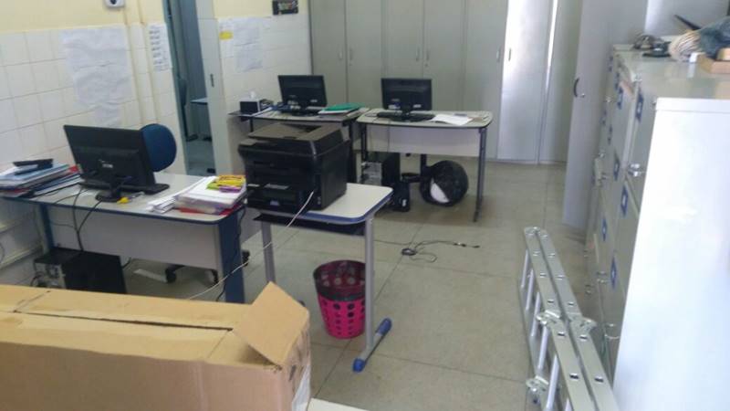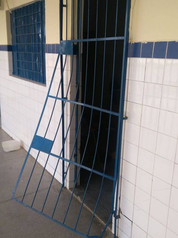 Os elementos chegaram a arrebentar a grade e a porta de uma das salas da escola. Entre o material roubado estão alimentos e produtos de informática, como notebooks. A ocorrência foi registrada na Delegacia de Polícia Civil (DPC).