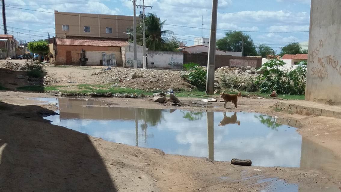 ‘Lagoa’ de esgoto dificulta passagem de veículos no Itaberaba, em Juazeiro