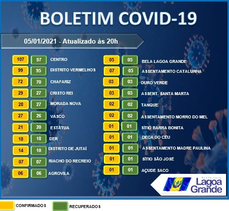 O município de Lagoa Grande (PE), no Sertão do São Francisco, apresentou o boletim epidemiológico com 15 casos do novo coronavírus (Covid-19).