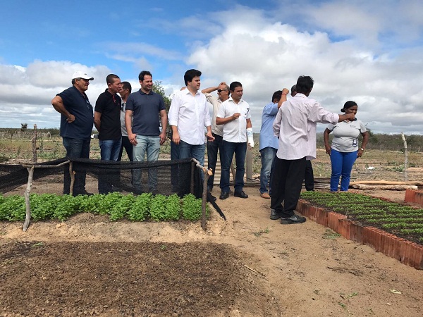Na visita, o ministro foi acompanhado dos ex-prefeitos Robson e Dhony Amorim, além dos vereadores Iara, Carlinhos Ramos, Professor Vavá e do ex-vereador Joaquim da Rocinha. Na sequência, Fernando Coelho Filho conheceu a horta orgânica cultivada pelo agricultor Aldeci Nogueira Dias. (Foto: Ascom)