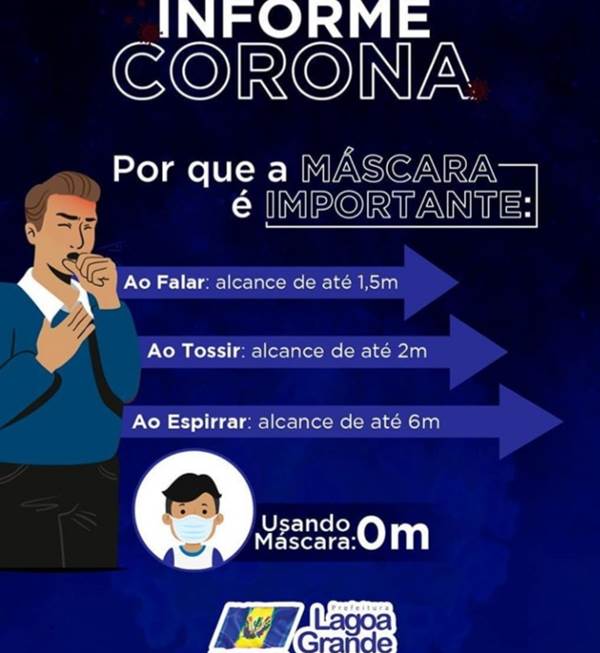 “Quem não usa máscara comete crime e poderá ser preso”, alertou o procurador-geral do Ministério Público de Pernambuco (MPPE), Francisco Dirceu Barros. Desde o início da pandemia, a Prefeitura de Lagoa Grande agiu rápido adotando todas as medidas, seguindo os protocolos do ministério da Saúde e do governo do Estado no sentido de prevenir, cuidar e conscientizar a população acerca da doença.