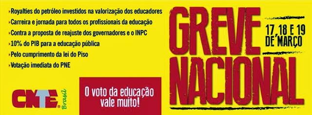Entre as reivindicações da classe estão a destinação dos royalties do petróleo à educação e a votação imediata do Plano Nacional de Educação, além do reajuste salarial acima dos 8% propostos.