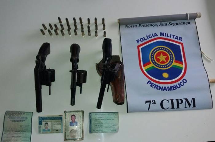 Durante a abordagem os policiais encontraram com eles três revólveres calibre 38 e dezenas de munições. Todos foram encaminhados à Delegacia de Cabrobó, também no Sertão do São Francisco, onde foram autuados em flagrante delito. (foto/divulgação)