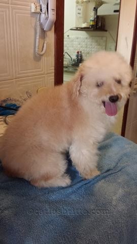 Meu cachorrinho chamado Sheike desapareceu sábado (9) pela manhã de minha casa, na Rua das Rosas, próximo a Feira da Areia Branca. Ele é da raça Poodle, pêlos brancos com caramelo. É um cachorro muito dócil o qual tenho imenso amor! Peço que divulguem essa foto dele para que alcance o maior número de pessoas possíveis.