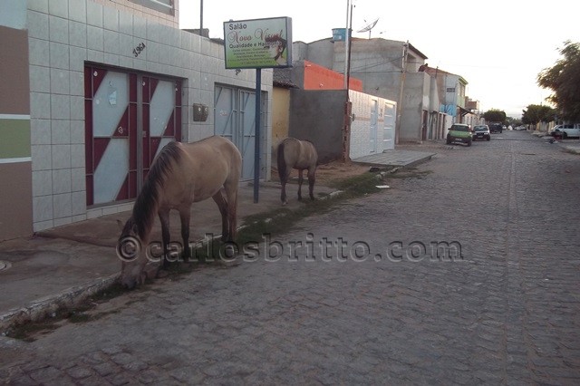No sábado (10) pela manhã, quando saí de casa, me deparei com dois cavalos em frente a minha casa na Rua Tiradentes, na Vila Eduardo. E ao sair para o trabalho, ao chegar na Avenida Monsenhor, me deparei com outro animal, um jumento comendo as poucas árvores que restaram naquela avenida.
