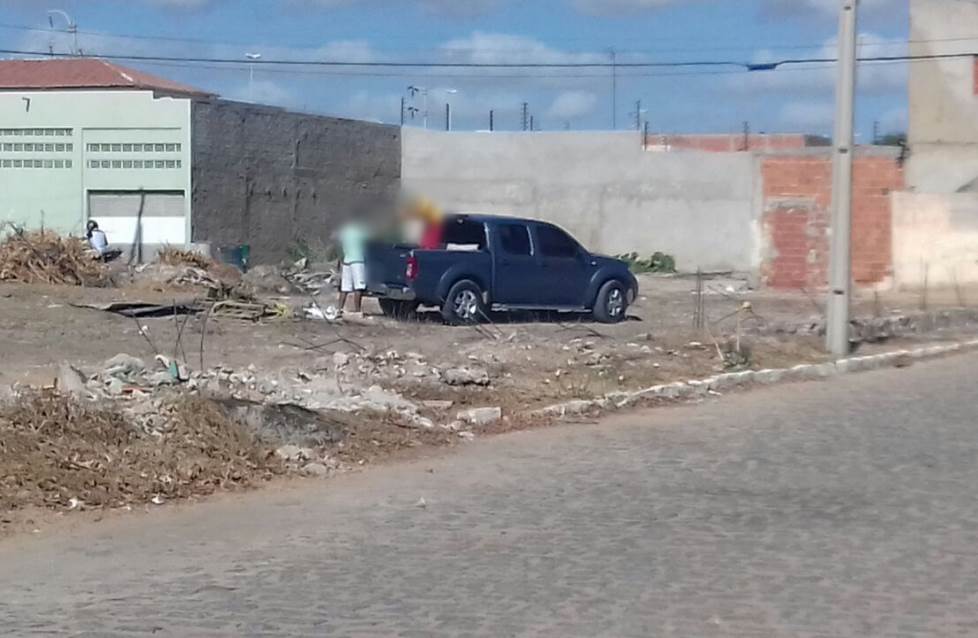 Um leitor flagrou dois homens jogando entulhos num terreno na Rua Humberto Teixeira, Bairro KM-2, em Petrolina. De acordo com o leitor, que preferiu o anonimato, o fato aconteceu ontem (22).