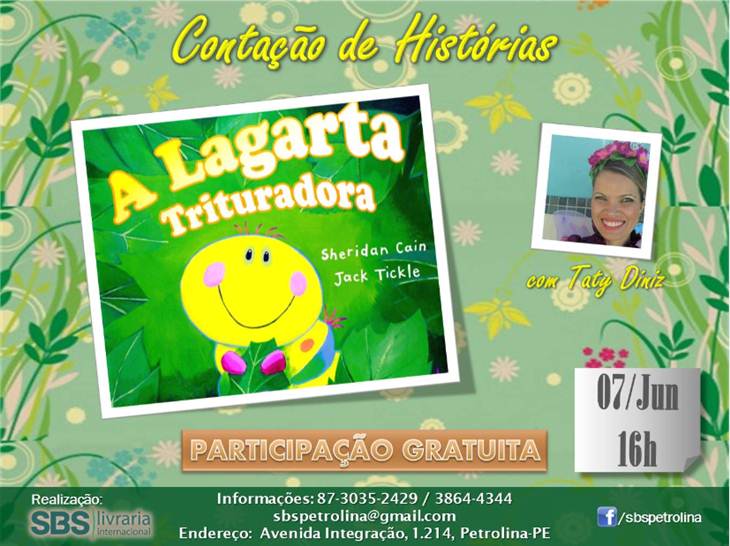 contação de históriaMais um evento voltado ao público infantil em Petrolina promete momentos de muita diversão neste domingo (7). O encontro de contação de histórias acontecerá na Livraria SBS, na Avenida da Integração, a partir das 16h. A entrada é gratuita.