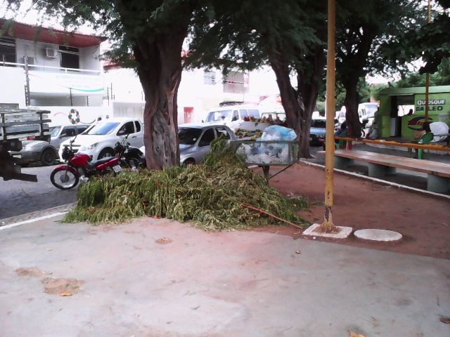 concordo q o prefeito venha mandar poldar plantas e recolher os galhos, agora nessa praça o q se tem é resto de construção pq os moradores não fiscalizaram quem colocou esse entulho lá? um absurdo vcs quererem q o prefeito faça o trabalho de pessoas no minimo mau educadas…pagamnos impostos sim mas não para jogarmos lixo na rua e querer q o prefeito faça a coleta tenho certeza q o caiminhão do lixo passa nesse lugar,o responsável por lixo de construção é de quem estar construindo pagar ao menos uma carroça para recolher.