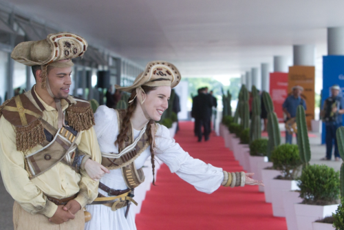 Espaço de lançamento de programas governamentais com autoridades da política e da economia, o Salão Nobre do Palácio do Planalto se vestiu de Sertão em homenagem a Luiz Gonzaga nesta segunda-feira (5). Os  artistas e intelectuais que participaram da entrega da Ordem do Mérito Cultural foram recebidos por atores caracterizados de Lampião e Maria Bonita. No total, foram 41 premiados entre intelectuais e instituições.