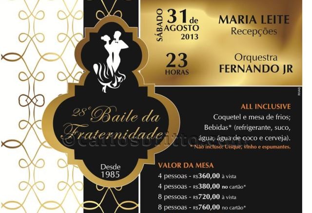 O Baile é promovido pela Loja Maçônica Segredo e Harmonia Petrolinense. Segundo os organizadores, ao longo desses 28 anos, o evento foi realizado com o objetivo de ajudar diversas entidades carentes, em especial, o Hospital do Câncer. A festa, que acontece a partir das 23h, será embalada ao som da Orquestra de Fernando Júnior e contará com 360 convidados – entre maçons e respectivos familiares, imprensa, empresários locais, parceiros e amigos.