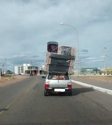 O condutor deste Fiat Uno certamente sabe que carro de passeio não foi feito para conduzir objetos dessa forma, mas pelo visto ele não está nem aí para o Código Brasileiro de Trânsito (CTB). E ele não é o único, infelizmente. Lamentável.