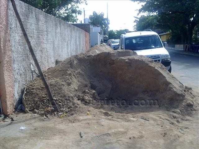 areia em calçadaHá algumas semanas o Blog registrou as dificuldades dos transeuntes em andar pelas calçadas em Petrolina. Pois é. O que não faltam são obstáculos.