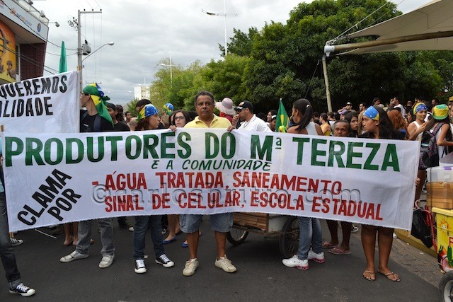 Entre as reivindicações presentes na praça, estavam uma melhor estrutura para o transporte coletivo e mais atenção à saúde. O prefeito Júlio Lóssio (PMDB) também voltou a ser alvo dos manifestantes.