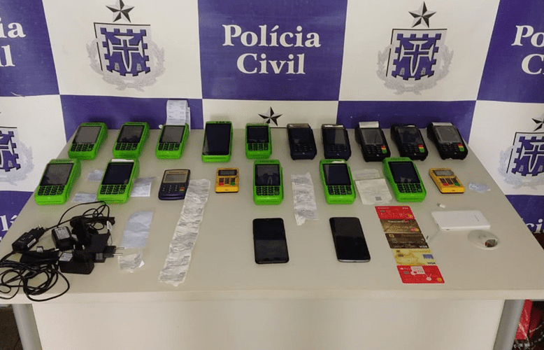 Após este contato por telefone, cabia ao menor ir buscar o cartão e, do quarto de hotel, fazia a transferência do dinheiro da conta da vítima para as empresas laranjas das máquinas utilizadas pela quadrilha, que também realizava compra com as máquinas encontradas com o menor. Cada uma delas era de uma empresa fantasma. Foram apreendidas 18 máquinas de débito automático, dois celulares e vários cartões.