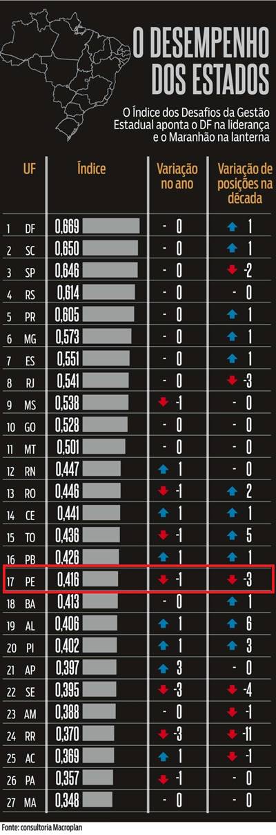 “Infelizmente mais uma vez Pernambuco caiu três posições e está entre os Estados que tiveram os piores resultados comparados entre os anos de 2021 e 2022. Isso só mostra que Pernambuco tem muito a avançar ainda na área da educação, infraestrutura, abastecimento de água, saneamento, segurança, mobilidade e tantas outras“, avaliou.