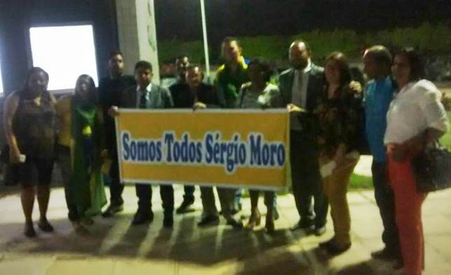 Ontem, manifestantes exibiram uma faixa de apoio ao Juiz Sergio Moro, mas de nada adiantou. Eles ganharam o apoio dos vereadores de oposição, que se juntaram ao grupo e até posaram para fotos. (foto/divulgação)